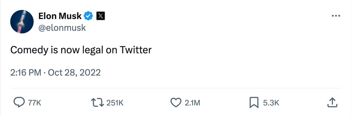 (“Comedy is now legal on Twitter”) X (formerly Twitter)